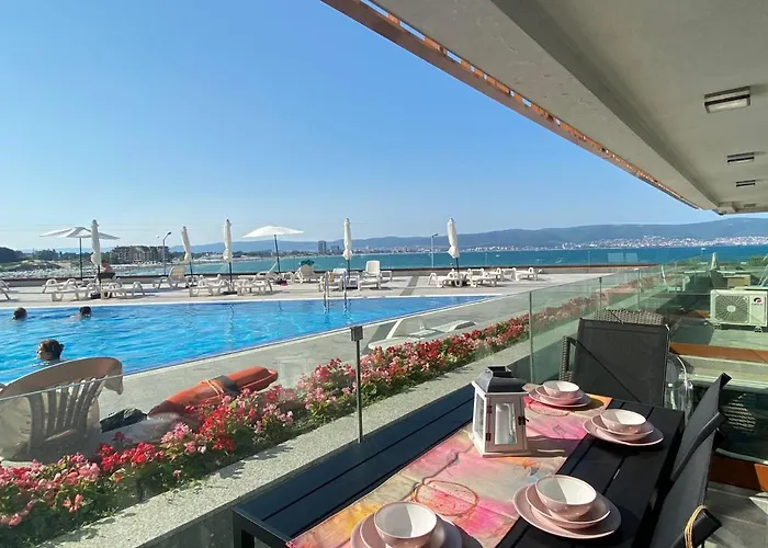 Burgaz havaalanı 20 km uzaklıktadır. Large Cozy Studio Paradiso dairesinde güneş terası, tenis kortu, bar mevcuttur.